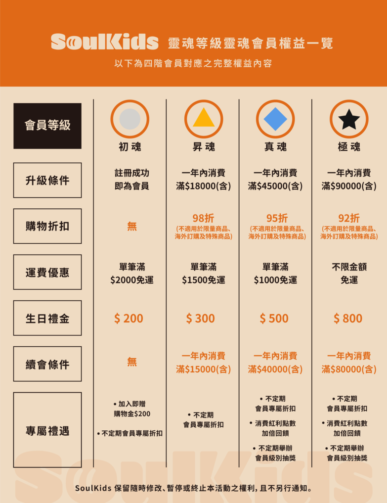 會員權益|SoulKids・階級專屬禮遇・進階解鎖